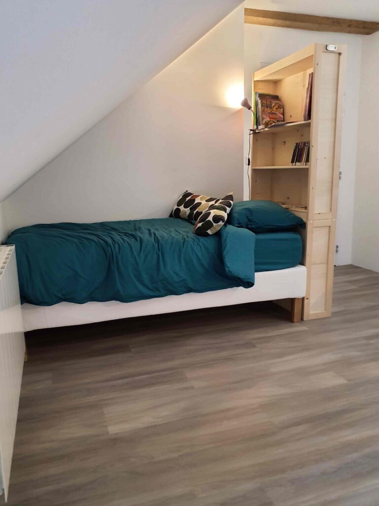 Les chambres sont (presque) identiques, l’une donne sur la cour, l’autre sur le jardin.